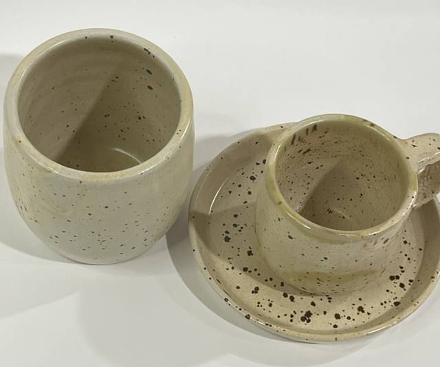 Tazzina realizza in grès e decorata con smalti